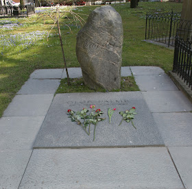 A dos cuadras más allá, en el cementerio de la iglesia Adolf Fredrik y cerca del Cine Grand, donde asistió por última vez en compañía de su esposa, se encuentra su modesta tumba, en la cual destaca una lápida en forma de roca en lugar de un busto o un monumento de bronce. En la tumba no faltan las flores ni las visitas de quienes, en actitud de respeto y admiración, hacen acto de presencia con un silencio sepulcral, ya que los suecos, poco acostumbrados a los discursos solemnes y a la grandiosidad de los mártires, prefieren conservar a su carismático líder en el corazón que inmortalizarlo en una efigie de metal bruñido.