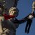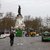 Un indignado cuelga una bandera en la estatua de Marianne en la Plaza de la República